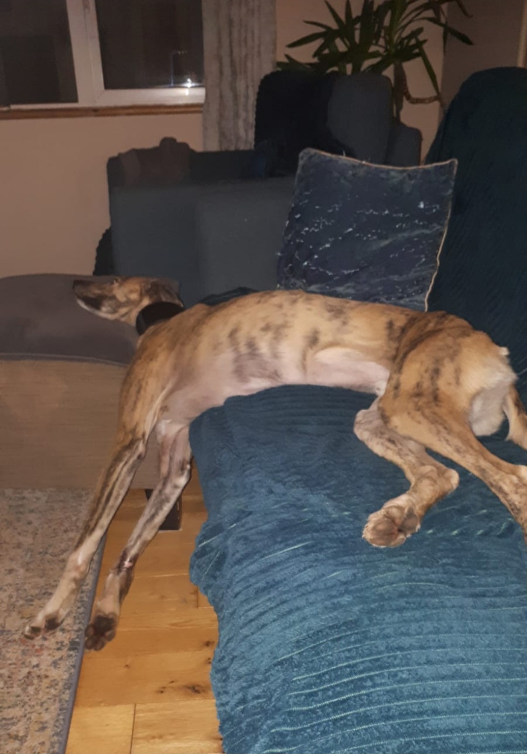 Cu was found 3 years ago in Kildare. He was in horrendous condition. A severe leg injury, malnourished and flea ridden.  His finder spent €3,000 treating his injuries and bringing his to the beautiful dog he is today. Sadly, illness has hit the family and Cu needs a new home. A quiet , child free home would be best.