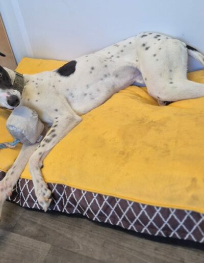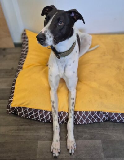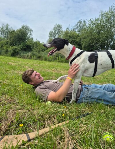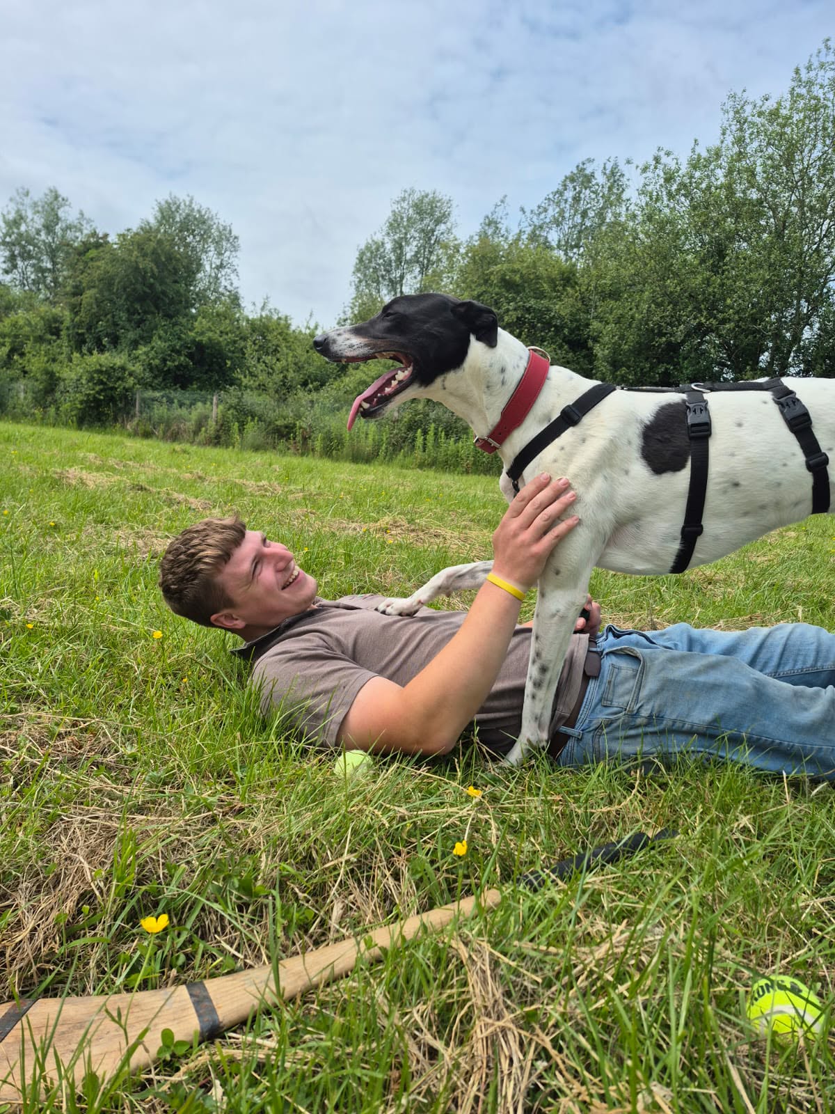 He is a big energetic boy who enjoys running and playing, but he’s just as happy lying in the sunshine watching the world go by.