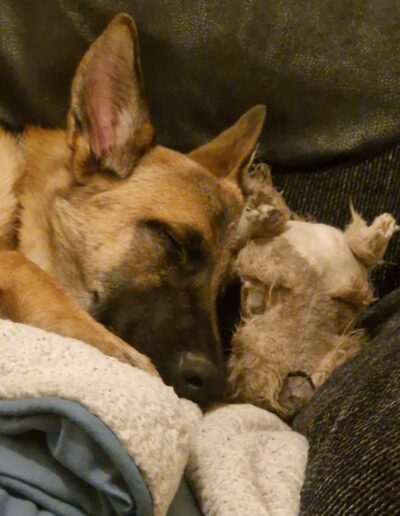- Lady is 9 months old. Vaccinated and microchipped, will be neutered.                                                                                                               Good with kids not with cats                                                                                                                                               Yes that is a teddy she loves teddys
