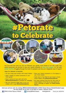This June, PAWS is delighted to announce and encourage our supporters to take part in the #petorate to celebrate with the ADCH. Petorate to celebrate is an online fundraiser that people can take part in to show your support for animal rescue charities. To take part, we ask our supporters to take to their gardens, car windows, outside your house, front windows or yards and decorate with anything you can think of from your pets’ best poses, chalk drawings with quotes or messages of support for animal rescues, pictures, cuddly toys, a scarecrow display, pet portraits, fun displays or even go the full mile by painting an animal display on the side of your house, anything to can think of so get your creative thinking caps on and be sure to use the caption and hastag #petoratetocelebrate and send your pics to PAWS Animal Rescue to our socials at facebook page PAWS Animal Rescue Ireland, email to info@paws.ie, or twitter at twitter@PAWSIreland.